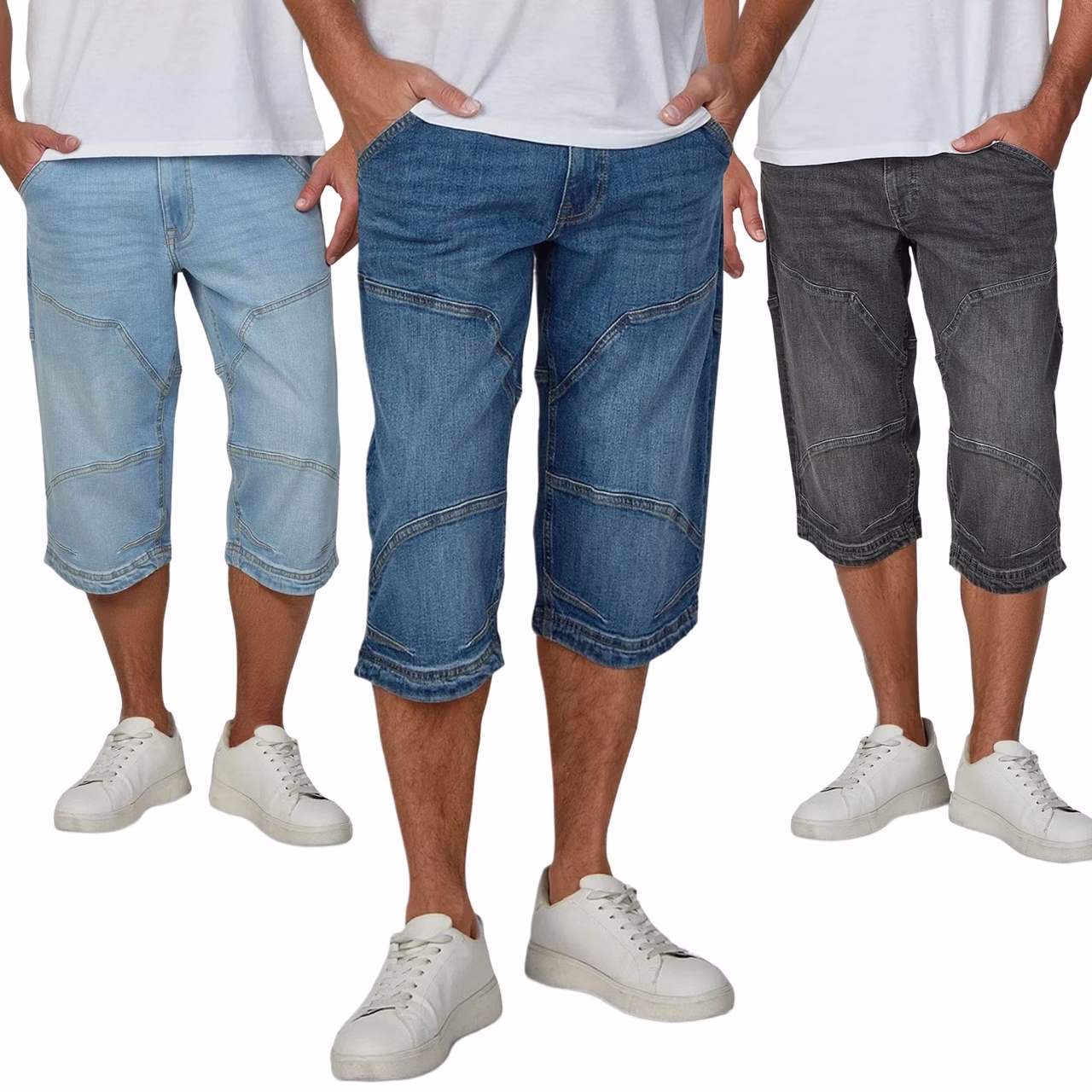 Mustang 3/4 Jeans Shorts Herren Stretch Straight Fit Freemont